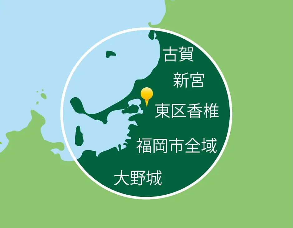 東区香椎を中心に、福岡市全域、新宮町、古賀市、大野城など